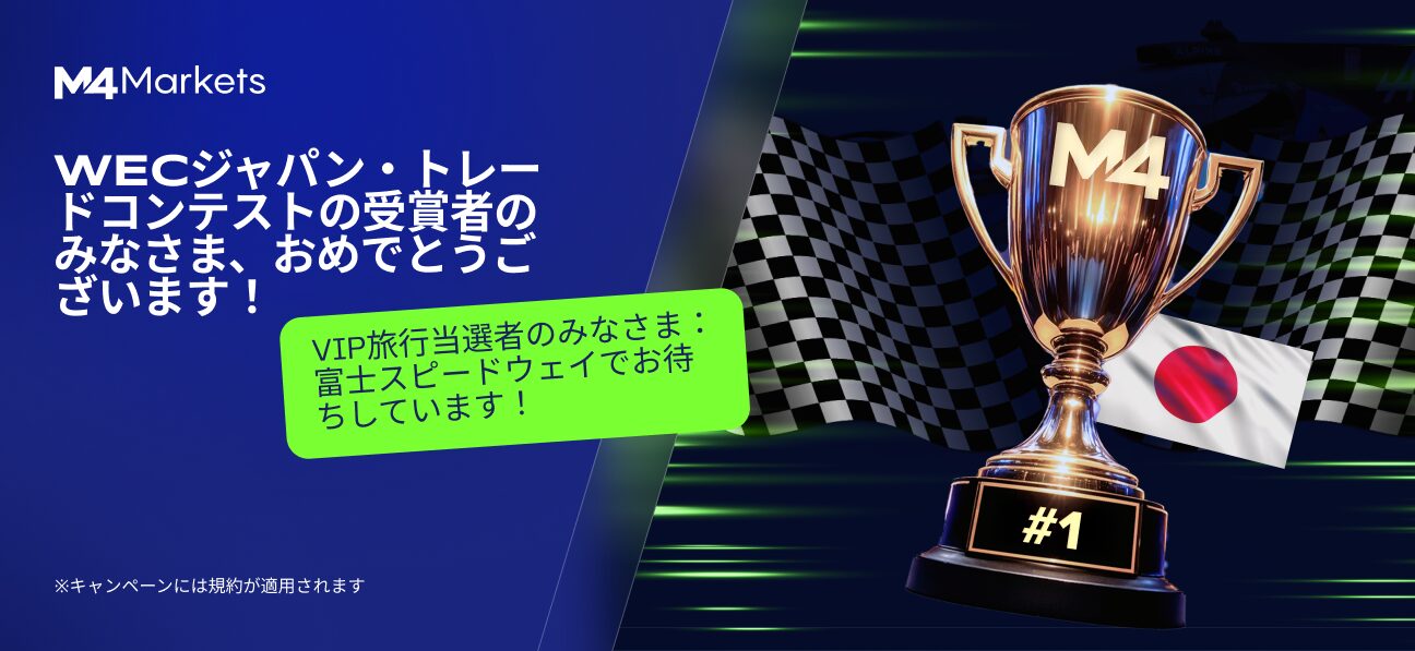 WEC ジャパントレーディングコンテストに多数ご参加いただき、ありがとうございました。数週間にわたるの熱い戦いの末、当選者が決定いたしました!数多くのトレーダーの中から見事選ばれた方には、月間コンテストのグランドプライズが贈られます。