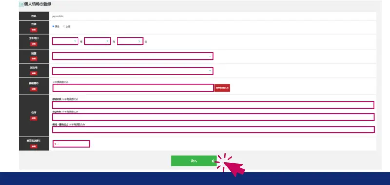 画面が切り替わったら、個人情報を入力します。