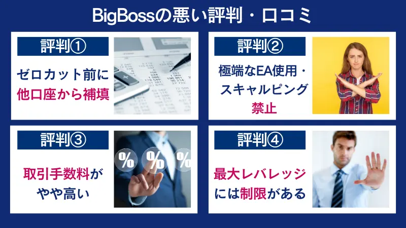 この記事では、BigBossの評判・口コミからわかるメリットやデメリットを詳しく解説、安全なのかどうか徹底的に調査しています。これからBigBossで海外FXを始めたい、という人は必見です!