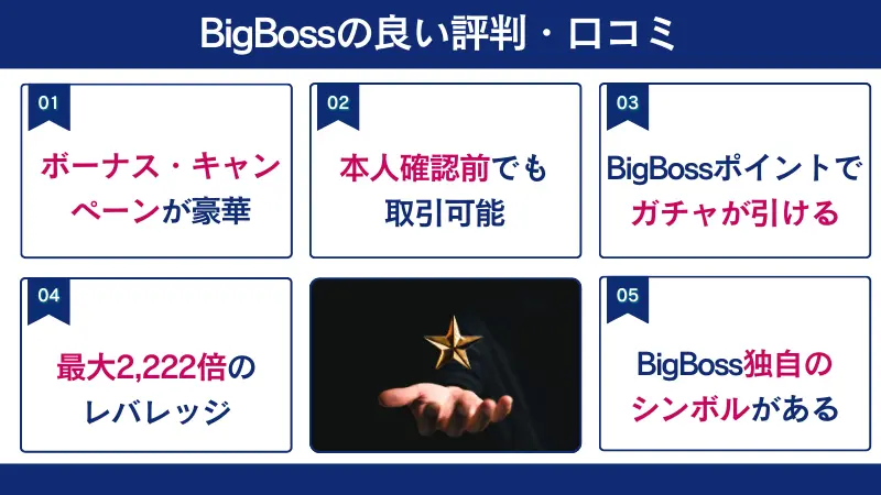 BigBossの良い評判や口コミは以下のとおりです。