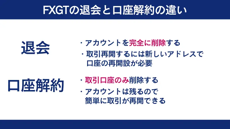 こちらではFXGTの退会と口座解約の違いについて解説します。