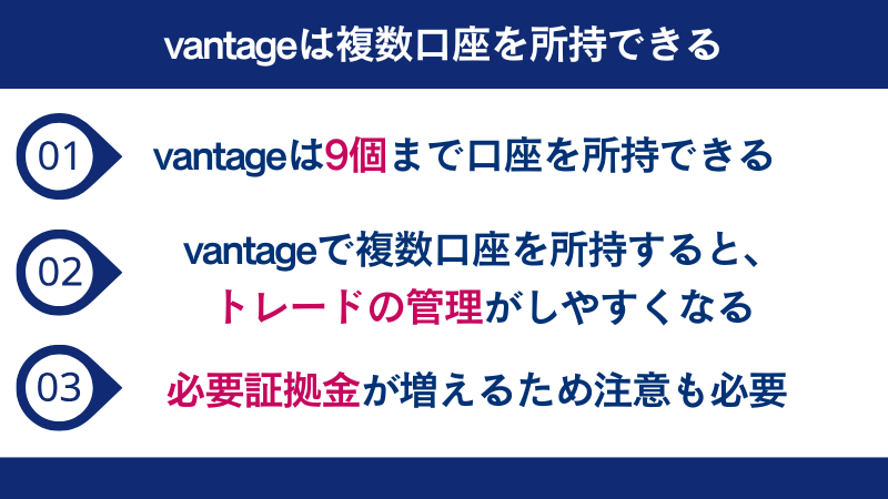 - Vantageで複数口座を所持すると必要証拠金が増えてしまう